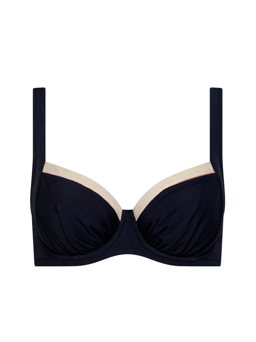 Soutien-gorge de bain à armatures intégrées pour un maintien optimal. Les bonnets échancrés et les larges bretelles doublées en lycra résistant assurent confort et soutien, même pour les grandes tailles. Finition fine au décolleté pour une touche élégante. Fermeture dos avec boucle et extension de 3 cm pour un ajustement parfait.