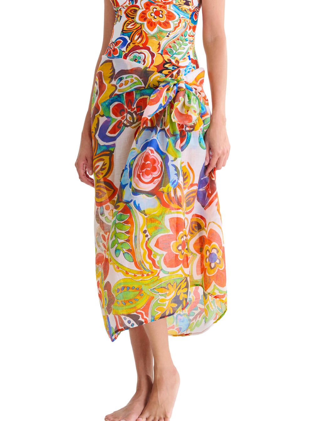 Polyvalent et léger, ce paréo taille unique de la collection MEXICO se porte de mille façons : robe, jupe, cape, foulard ou bandana. Son imprimé floral multicolore éclatant apporte une touche d’énergie et de féminité à vos journées plage.
